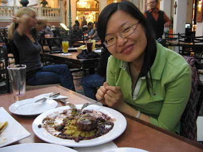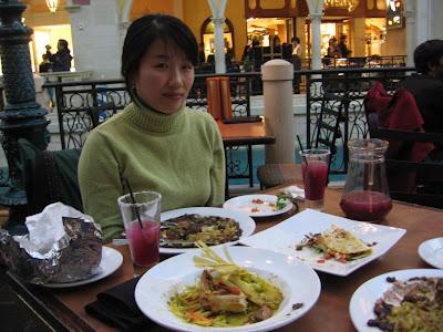 我们在威尼斯人吃了晚餐,一家意大利餐馆,海伦点了一扎玛格丽特,我抿了几口,立即很丢人的开始脸色发红,脑袋发晕。几乎滴酒不沾的人果然是碰不得酒的。海伦比较厉害,一杯接着一杯,依旧脸不变色心不跳的。