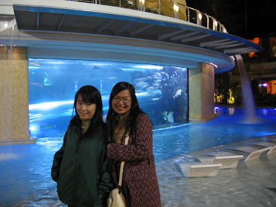 酒店的招牌项目应该是它的室外大鱼缸,就叫the tank,算是个小型水族馆,其间还打孔做了水滑梯,配上周围的露天泳池,夏天的时候在这里晒太阳看鱼,应该挺有味道。看到旁边的温水浴池里,有两个mm在边喝酒边泡澡,真是有雅兴。