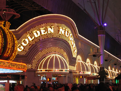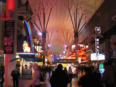 抵达维加斯正是华灯初上的时候,我们预定的golden nugget酒店坐落在老城区,著名的fremont灯光隧道边上。前几日都是在strip附近活动,还没有机会看过这个号称世界第一的灯光隧道,现在倒是方便我们一饱眼福了。大平他们前几天就来看过,评价不高,说是和国内的灯管隧道也差不多,大不了多少,我们自己体验了一下,倒是觉得相当的震撼,老公还特意录了一段录像。