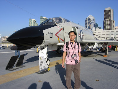 从动物园出来,时间还早,我们本来以为动物园需要一整天的时间,看来是高估它了。大家一合计,决定去看退役的航空母舰——中途岛号。这个midway因中途岛战役得名,它45年下水, 参加过二战,越战和海湾战争,92年退役,是美军历史上服役时间最长到航空母舰。04年一月结束最后一次航行,永久停靠在圣地亚哥专门为它建造的码头,同年七月正式作为博物馆对外开放,当年曾是世界上最大到航母 ,如今乃是美国海军最大的航空博物馆。老公和大平都对参观这个博物馆跃跃欲试。