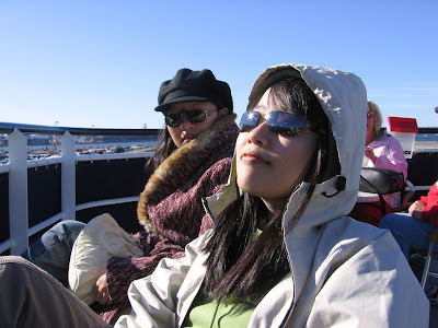 游行在中午时分结束,我们草草解决了中饭之后就登上了观鲸游轮。开始大家都很兴奋,选择了甲板上的座位,从海上遥望圣地亚哥城,觉得这个城市的确很美。